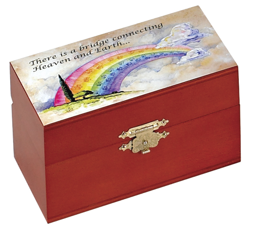 This lovely box features artwork created by renown artist Nora Wildgren and was inspired by the very moving and popular poem Rainbow Bridge. Each box is decorated and stained by hand and is accompanied by an insert with the artist's print on one side and the text of the poem on the other. Three sizes are available: 7330, 7331, and 7332.