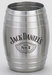 This stainless steel barrel shot is modeled to be a scaled down version of the actual Jack Daniel's Whiskey barrels. The Jack Daniel's Swing logo and Old No. 7 Brand Cartouche logo appears on one side of the shot glass. Official Licensed Product.