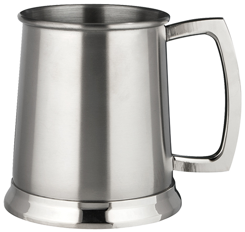 Stainless steel base, satin finish body. This item is ideal for engraving. The generous handle has been smoothed and polished for comfort. Polished pedestal base.