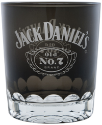 This double old fashioned is created by layering black glass over clear and then etching away the black to reveal the layer below. The DOF features the Jack Daniel's swing and cartouche logos and cut-away detailing along the bottom edge of the glass. The end result is a distinctive and stylish piece that makes a unique addition to any barware collection. The glass stands 3-1/2 inches high and holds 9 ounces. Makes a companion piece to items 8720. Officially licensed product.