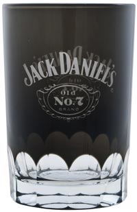 This shot glass is created by layering black glass over clear and then etching away the black to reveal the layer below. It features the Jack Daniel's swing and cartouche logos and cut-away detailing along the bottom edge of the glass. The end result is a distinctive and stylish piece that makes a great addition to any barware collection. Stands 2-3/4 inches high and holds 4 ounces. Makes a companion piece to items 8718. Officially licensed product.