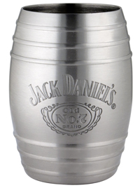 This stainless steel barrel shot is modeled to be a scaled down version of the actual Jack Daniel's Whiskey barrels. A debossed Jack Daniel's Swing logo and Old No. 7 Brand Cartouche logo appears on one side of the shot glass. Official Licensed Product.