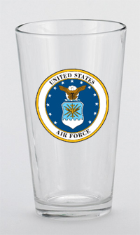 16 ounce mixing glass with the U.S. Air Force symbol.