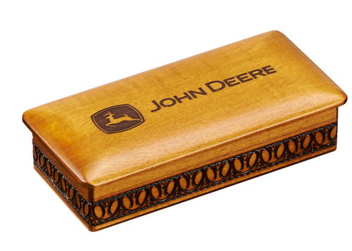 This box features a design around the base, and the lid is etched with the famous John Deere logo. Handmade in the Tatra Mountain region of Poland. Officially licensed John Deere product.