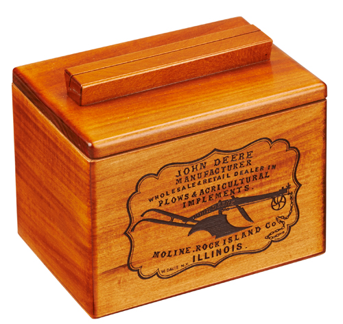 This box is designed to hold your favorite recipe cards. The lid features a slot that holds recipe cards upright. The front of the box is etched with a vintage John Deere plow design. Handmade in the Tatra Mountain region of Poland. Officially licensed John Deere product.