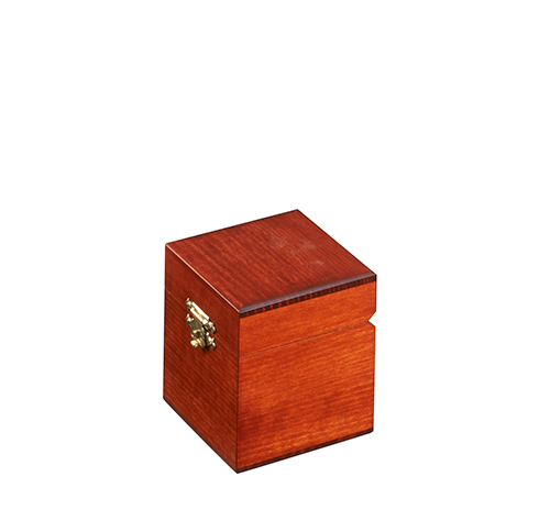Simple, classic, cube shape with maple finish. A brass clasp secures the closed lid. Handmade in Poland's Tatra Mountain region.