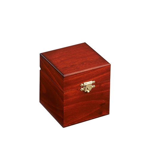 Simple, classic, cube shape with maple finish. A brass clasp secures the closed lid. Handmade in Poland's Tatra Mountain region.