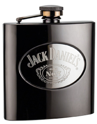 Stainless steel flask with gunmetal finish. Etched medallion with Jack Daniel's logo is recessed into the flask body. Captive top. Official Licensed Product.