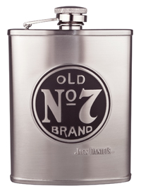 Satin Finish Stainless Steel Flask features embossed/debossed Jack Daniel's Old No. 7 logo with black finish and embossed Jack Daniel's logo. Captive top. Official Licensed Product.