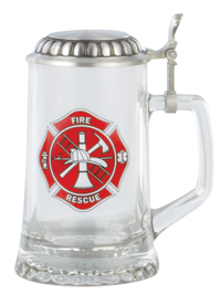 New and exclusive! This glass starbottom stein is decorated with a permanent Maltese cross decal. A flat pewter lid completes the item. The sturdy glass body is tapered and has a starburst light-reflecting pattern on the bottom. The smooth, heavy-gauge pewter lid is removable for easy engraving and personalizing! The lid has a special threaded hinge pin, so it can be easily removed and re-attached by simply tightening and loosening this hinge pin with an allen wrench.