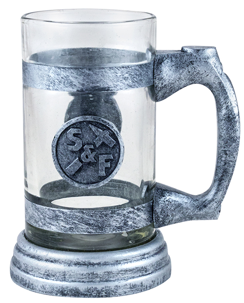 This Smith Forge glass tankard is decorated with a Smith Forge logo badge.