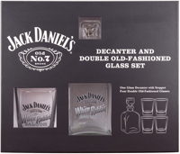 This gift set includes one decanter and four DOF glasses, all of which are decorated with Jack Daniel's White Rabbit Saloon logo. The set comes in a sleek, black gift box. Officially licensed product.