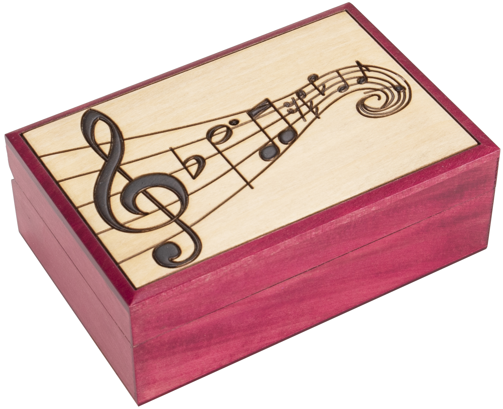 This box is perfect for music lovers. Various musical symbols and notes appear on a staff that trails into a swirl at the end.