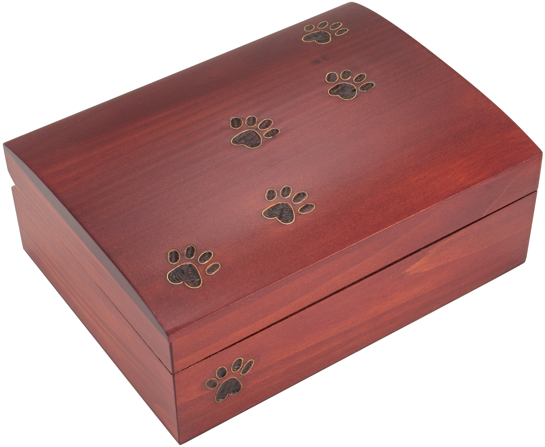 This simple but elegant box is decorated with burned paw prints outlined in gold.