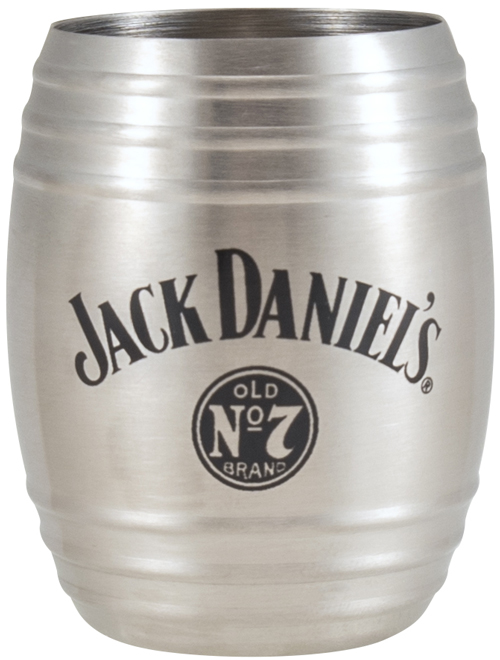 This stainless steel barrel shot is modeled to be a scaled down version of the actual Jack Daniel's Whiskey barrels. The Jack Daniel's Swing logo and Old No. 7 logo appears on one side of the shot glass. Official Licensed Product.