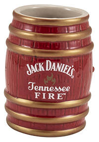 This 2.5 oz stoneware shot is crafted to look like a whiskey barrel. It features the Jack Daniel's Tennessee Fire logo. Official Licensed Product.