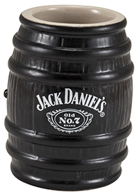 This 2.5 oz stoneware shot is crafted to look like a whiskey barrel. It features the Jack Daniel's logo. Official Licensed Product.