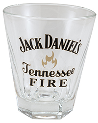2.5 oz shot glass decorated with the Jack Daniel's Tennessee Fire logo. Official Licensed Product.