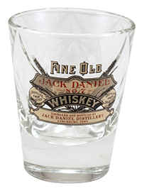 2.5 oz shot glass decorated with the Jack Daniel's Fine Old Whiskey logo. Official Licensed Product.