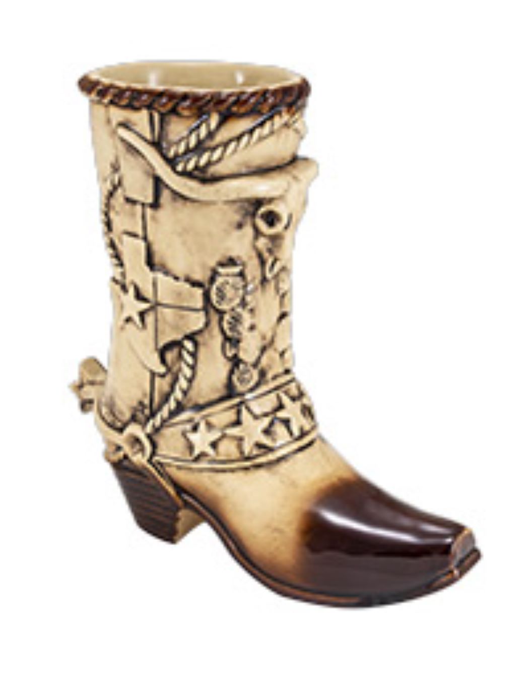 This 1.0L stoneware beer boot is a homage to the state of Texas. Shaped like a cowboy boot complete with spurs, it is decorated with a ram's skull on the front, the state of Texas on one side and an oil derrick on the other.