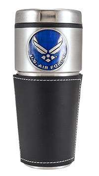 This stainless steel, 16oz, double-wall tumbler features a blue U.S. Air Force badge.