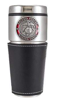 This stainless steel, 16oz, double-wall tumbler features a U.S. Marine Corps badge.