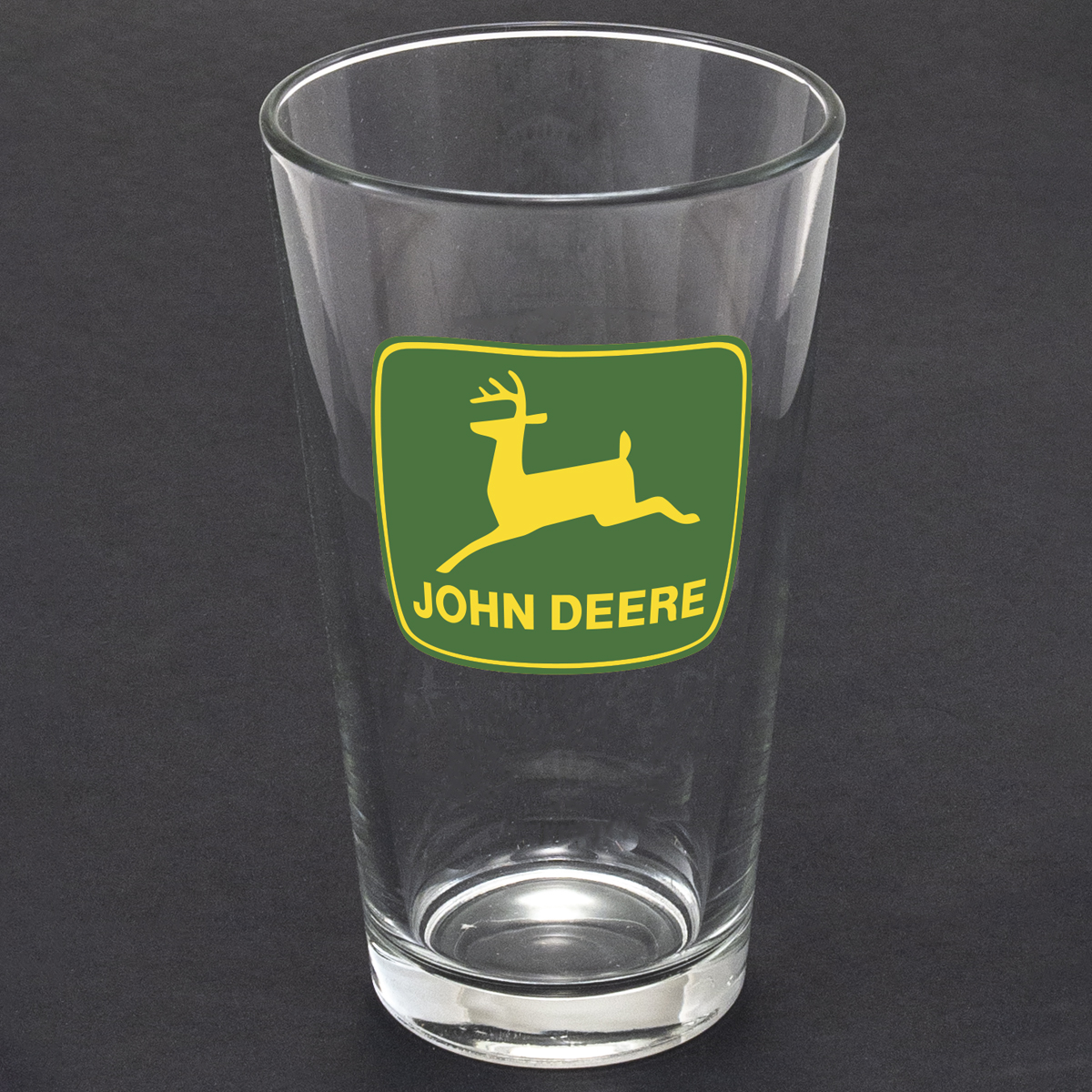 Classic shaped 16 ounce glass tumber with a 1968 John Deere Logo design direct printed onto the glass. Official Licensed Product.