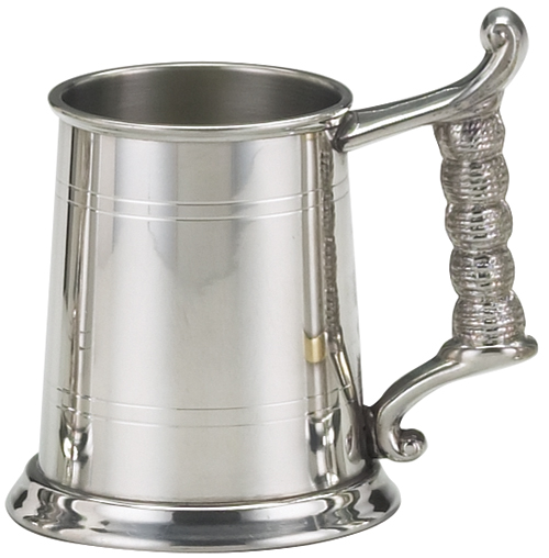 Classic shape, brightly polished finish with a sculpted rope handle. Glass base. Made in England.