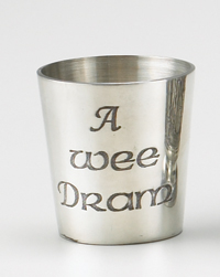 This solid pewter body 1 ounce shot glass featuring the phrase A Wee Dram is a great piece for serving up A Little Shot for you and your friends.