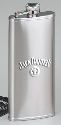 Jack Daniel's Stainless Steel Boot Flask. Satin finish. The embossed Jack Daniel's swing logo and Old No. 7 brand bug logo appear on the front. The twist off stainless steel captive top is permanently attached to the flask for loss prevention. Official licensed product.