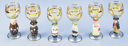 Figurine stems made by Goebel. Cut grapes and leaf pattern. Bowl and base feature gold-leaf decoration. (One each of #5601, 5602, 5603, 5604, 5605, and 5606 complete the set.).