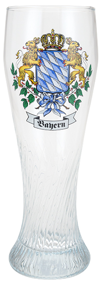 Optical spiral glass body, decorated with a Bavarian Coat of Arms motif consisting of lions, shields, crown, wreath and flags.