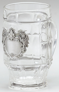 The multifaceted glass body displays a pewter raised lion coat of arms with an engraveable surface. A classic piece, affordably priced.