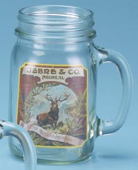 Features the 1897 calendar artwork of a majestic elk in natural setting. High fired, quality reproduction. Canning jar shape with handle and 16 ounce capacity. Affordably priced. Official Licensed Product. Caution: Not for food storage.